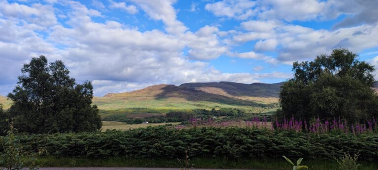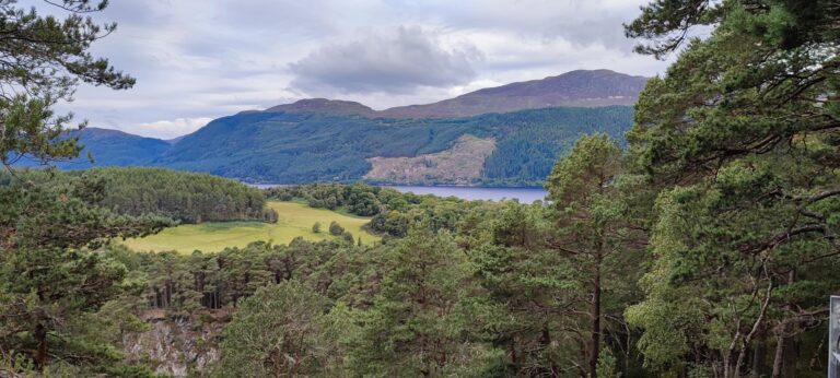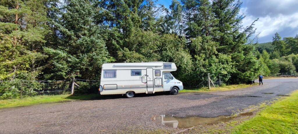 Wir fuhren weiter und dann die Straße auf der Ostseite des Sees entlang. Eine Wunderschöne Panoramastraße, auf der wir auch einen schönen Platz zum übernachten fanden. Vom ganzen Trubel entfernt konnten wir in Ruhe unser Essen kochen und den Ausblick genießen. Der Ausblick und der „Geisterwald“ waren bei weitem interessanter als Loch Ness.