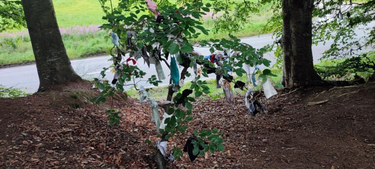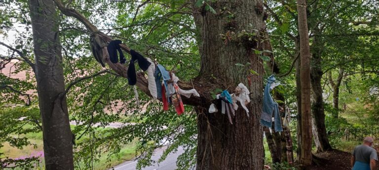 Clootie Well ist eine kleine Quelle in einem Wald. In diese (heilige) Quelle wird ein Kleidungsstück oder einen Stofffetzen getaucht und anschließend auf einen Baum gehängt. So zieren unzählige Kleidungsstücke und Stofffetzen die umliegenden Bäume. Das soll Krankheiten heilen. Dieser Glaube reicht bis in die keltische Zeit zurück.