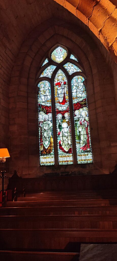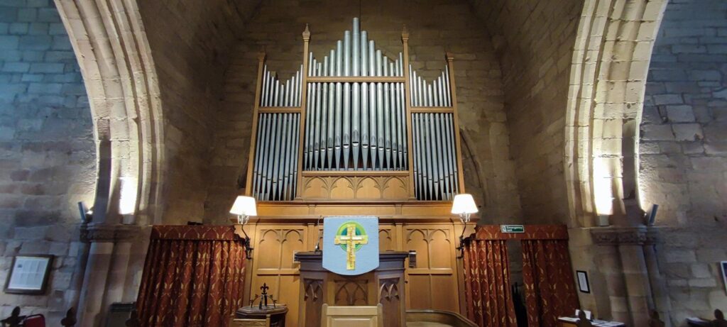 Nach Glamis Castle führen wir auf einen kostenlosen Übernachtungsplatz. Andauernd Weißbrot ist langweilig, darum haben wir auf dem Platz wieder Brot gebacken. Während das Brot im Dutch oven backte, besichtigten wir eine Ruine, unweit des Platzes. Nichts besonderes, aber die Füße brauchten wieder Bewegung. Neben dem Platz stand eine Kirche, diese wollten wir auch besichtigen. Ein Mann kam mit seinen Hunden vorbei und wir kamen ins Gespräch. Dabei erfuhren wir, das er einen Schlüssel für die Kirche hat, so konnten wir die Kirche auch besichtigen. Die Kirche hat eine schöne Orgel und eine echt super Akustik. Wegen dieser Akustik kommen hier schon öfters Musikproduzenten her um Musik.- und Gesangsstücke aufzunehmen. Der Mann kann die Orgel nicht spielen, aber er lies uns ein paar Töne von dieser hören und so konnten wir die Akustik hören. Wirklich schön. Sollte hier wer übernachten, empfehle ich den Mann aufzusuchen und um eine Besichtigung der Kirche zu bitten. Er weiß auch viel über die Geschichte der Kirche zu erzählen.