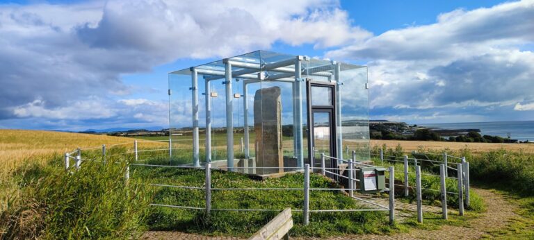Der Sanwick Stone liegt etwas abseits der Route. Wenn man schon vorbei fährt kann man ihn sich ansehen. Unserer Meinung nach ist er es aber nicht wert, eine längere Anfahrt zu machen.