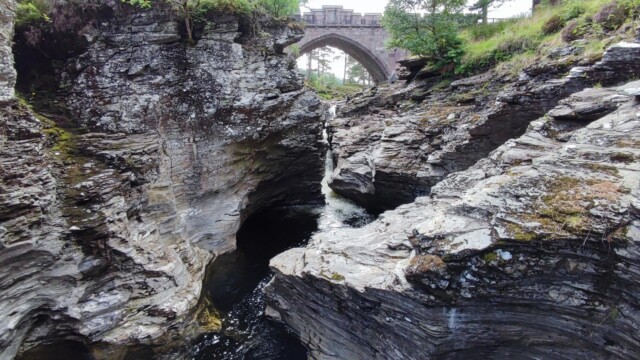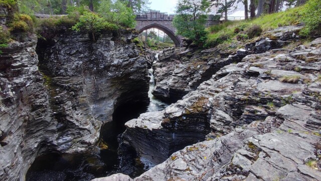 Linn of Dee ist Großbritanniens größtes nationales Naturschutzgebiet. Sehr großer kostenloser Parkplatz. Parkranger Vorort. Man kann hier endlos wandern. Unter der Brücke hat sich der Fluss Dee sehr schön in den Felsen eingegraben. Bei schönem Wetter ist hier auch baden möglich.